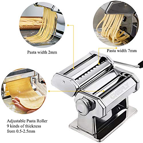 ã€� neun Stärke, zwei Arten Breite für Pasta 】-9 möglichen Einstellungen der Teigdicke von 0–2,5 mm, Markierung auf dem Knopf. Dann können Sie votieren Nudeln Breite wie 7 mm und 2 mm, oder 3 cm quadratische Ravioli mit gewellten Kanten.Entspannen Ihren Müdigkeit beim Kochen.