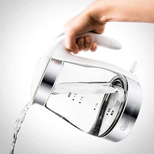 CJTMY Elektrischer Wasserkocher – Glas-Teekessel (1,7 l) Schnell kochend und kabellos, Edelstahl-Finish Heißwasserkocher…