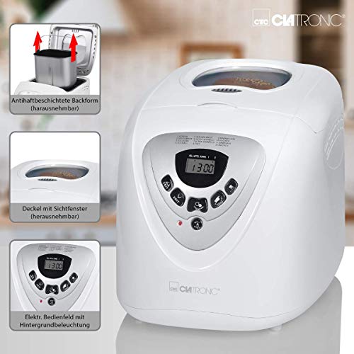 Clatronic Brotbackautomat BBA 3505 mit Timer, vollautomatische Teig- und Brot-Zubereitung, 12 Backprogramme, Brot…