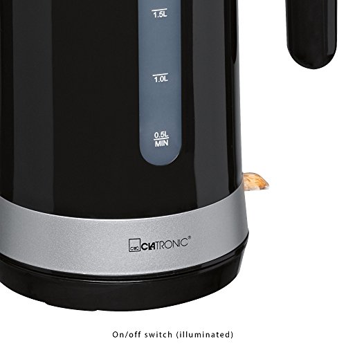 Clatronic WK 3452 Wasserkocher, 1,8 L, 2 außenliegende Wasserstandsanzeigen, Kalkfilter (heruasnehmbar), schwarz