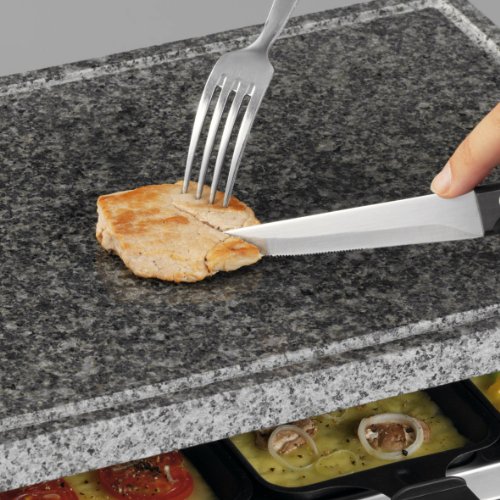 Cloer 6420 Raclettegrill mit Naturstein / 1300 W / 8 grosse Pfännchen antihaftbeschichtet mit wärmeisolierten Griffen