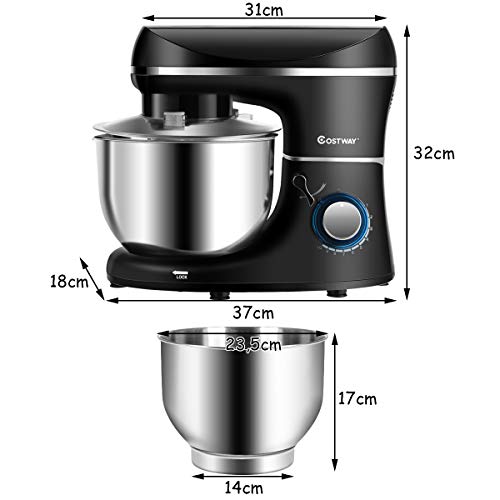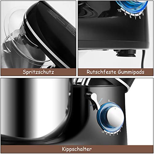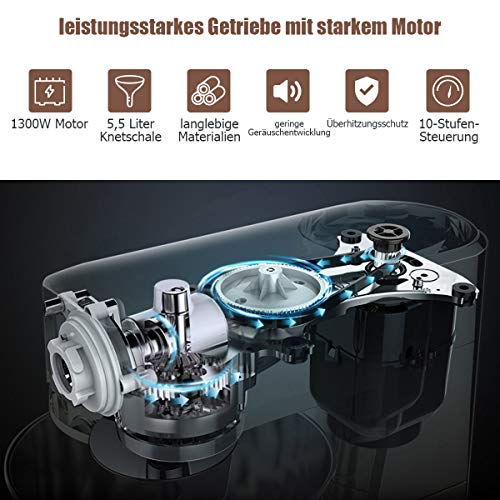COSTWAY 1300W Küchenmaschine Knetmaschine, 5,5L Rührmaschine, 10-stufen Teigmaschine inkl. Schneebesen, Knethaken…