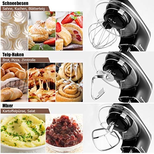 😋【Praktisches Zubehör】Mit 3 verschiedenen Arten von Aufsätzen, Rührbesen, Knethaken und Schneebesen ist dieser Standmixer einfach zu bedienen, um Kuchen, Brot, Kekse, Gebäck, Muffins und Waffeln herzustellen. Die Schüssel mit einem Fassungsvermögen von 5,5 l reicht aus, um den Teig für 8 Dutzend Kekse oder 3 Brote in einer einzigen Charge zu mischen.
