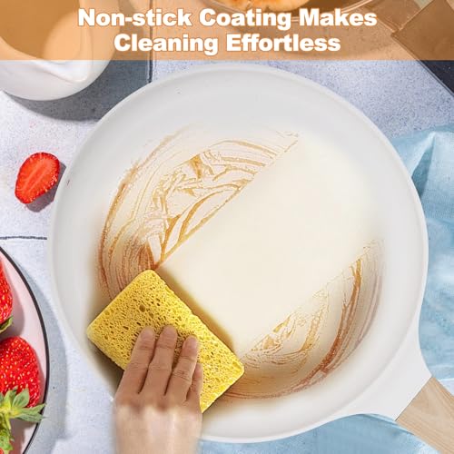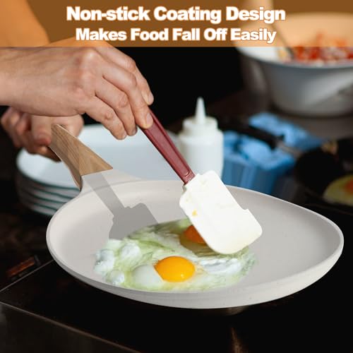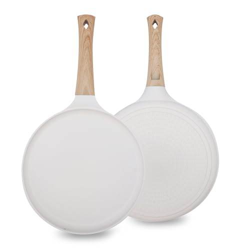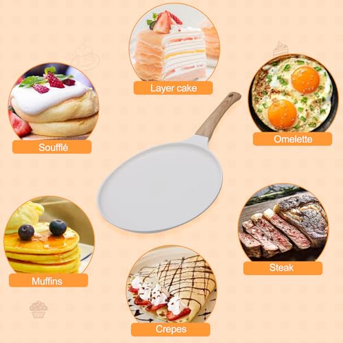 Crepe Pfanne 28cm, Antihaftpfanne Omlettenpfanne Pfannkuchenpfanne Induktion Pancake Pfanne Kompatibel Mit Allen Herdarten, Holzgriff (Weiß)
