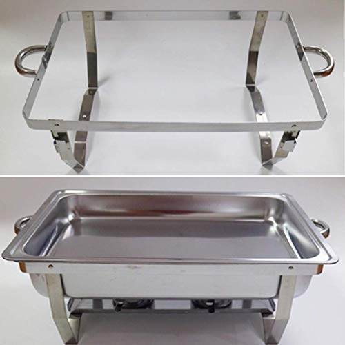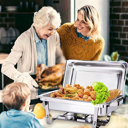 LANGLEBIG WARMHALTEN: Edelstahl Chafing Dish verwendet eine hochwertige Edelstahlkonstruktion und verfügt über eine Bodenschale, die zwei Brennstoffbrenner absorbieren kann, die sich perfekt für das Servieren von Buffets und sonstige Situationen eignet, in denen Sie Speisen über einen längeren Zeitraum warm halten möchten .