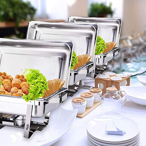 LANGLEBIGES MATERIAL: Dieses Chafing Dish-Set ist von großer Robustheit. Hergestellt jeglicher hochwertigem und strapazierfähigem Edelstahl, korrosionsbeständig, hitzebeständig und rostfrei. Hochglanz und benutzerfreundliches Design, Vereinsamung, große Kapazität, platzsparend, leicht zu reinigen.
