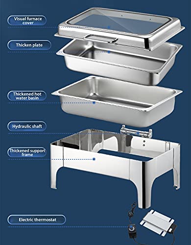 [Transparente sichtbare Abdeckung]: In der Mitte der Buffetwärmer-Verdeckung befindet sich eine quadratische transparente sichtbare Verdeckung, mit der Sie die Situation der internen Lebensmittel in Echtzeit erfassen können, ohne die Verdeckung zu öffnen, um Lebensmittel mit schlechtem Geschmack zu verhüten zu lange Aufheizzeit gut