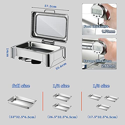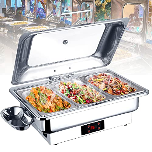 [Bester Assistent für die Gastronomie]: Der Elektrisch Chafing Dish besteht aus lebensmittelechtem Edelstahl 304, der keine Nebenwirkungen auf Lebensmittel hat. Sie können damit alle Lebensmittel nach Bedarf erhitzen. Es stehen alias 3 Größen von Esstellern zur Auswahl (Vollgröße, 1/2, 1/3). Das geteilte Design erleichtert die Reinigung. Es bringt Komfort in Ihr Essen.