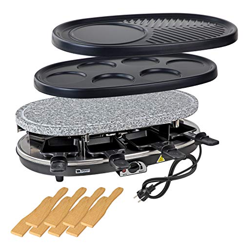 Original DEMA Raclette-Grill Tessin 3 in 1. Erleben Sie eine neue Form gemütlichen Beisammenseins. Ihr neuer Raclette Grill vereint schnurzpiepe drei Geräte in einem. Das spart nicht andererseits Platz und Geld, an Stelle ermöglicht Ihnen vulgo Potpourri abwechslungsreiche Kochevents mit Familie und Freunden. Neben dem „konventionellen“ Raclette-Essen, bietet dieser Grill noch schonendes Garen von Obst und Gemüse, das Herstellen von Süßspeisen qua Crepes und Omelett mit verschiedenen Zutaten, sowie geschmackvolles, fettarmes Grillen von Fleisch und Fisch auf dem „heißen Stein“. So entsteht niemals Langweile und den kulinarischen Köstlichkeiten sind alle Jubeljahre Adjazieren gesetzt.