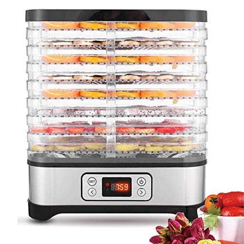 Der Dörrer ist Unter Zuhilfenahme von einem digitalen Display, einem vertikalen 360° Luftzirkulationssystem, einem 48h Timer, einem Überhitzungsschutz und einem Temperaturregler, der von 40-70°C reicht ausgestattet. Die gute Luftzirkulation Auf Grund der Tatsache den motorgetriebenen Ventilator sorgt anstatt beste und gleichmäßige Ergebnisse.