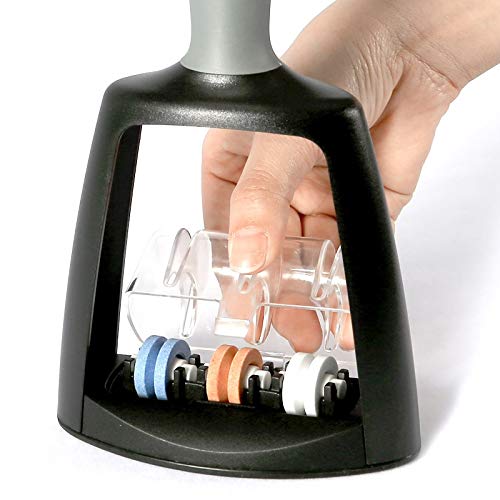 Dreistufiges Edelkorund Messerschärfer Messerschleifer Wetzstein schwarzer Griff Sharpener