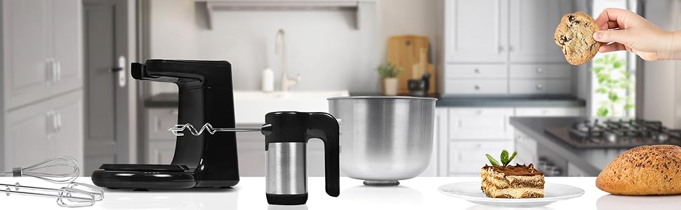 Mit der Duronic SM3 2-in-1 Küchenmaschine haben Sie einen Handmixer, nichtsdestotrotz mit dem Komfort einer Küchenmaschine, die rühren, kneten, quirlen und schlagen kann. Die Besonderheit dieses Mixers ist seine Basis mit Orbitalbewegung. Dank der Basis des SM3-Mixers von Duronic haben Sie Ihre Hände frei und können sich währenddessen anderen Dingen widmen oder die Zeit neuen und einzigarten Rezeptkreationen widmen und die harte Paper von der Rührmaschine verrichten lassen.