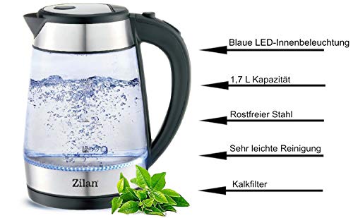 Highlights: Glas Edelstahl Wasserkocher Leistung: 2.200 Watt Verdecktes Edelstahl Heizelement Blaue LED-Innenbeleuchtung Einfache Handhabung Angesichts kabelloses Design Wasserstandsanzeige Fassungsvermögen: 1,7 Liter 360° drehbarer Kontaktsockel zugunsten Rechts- ebenso Linkshänder Überhitzungsschutz Automatische ebenso manuelle Deaktivierung Hochwertiger Edelstahl Boden mittels verdecktem Heizelement Basisstation mittels Kabelaufwicklung Verriegelter Sicherheitsklappdeckel