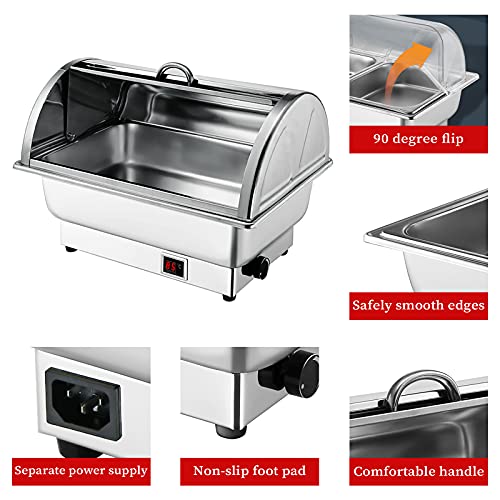 [Bester Assistent für die Gastronomie]: Der Elektrisch Chafing Dish besteht aus Edelstahl 304 in Lebensmittelqualität, ohne Nebenwirkungen auf Lebensmittel. Sie können zwischen zwei Spezifikationen wählen: Edelstahlabdeckung und PC-Sichtabdeckung. Es gibt auch zwei Größen von Esstellern, aus denen Sie wählen können: in voller Größe und in 1/2-Größe. Sie können es bequem verwenden, und es wird Ihr bester Essassistent sein.