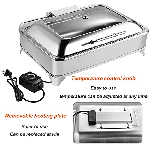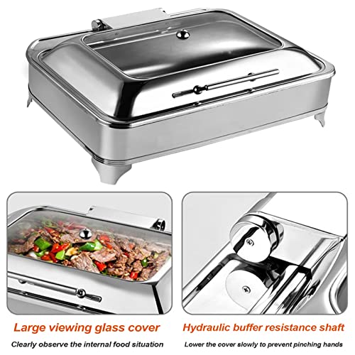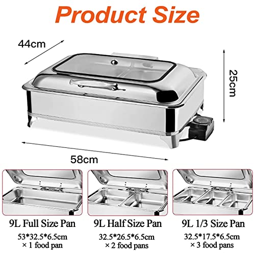 Elektrisch Chafing Dish Speisewärmer für Partys und Buffets, 9L Wärmebehälter für Essen Edelstahl Buffetwärmer mit Sichtbarer Abdeckung, GN 1/1, 1/2, 1/3 Optional