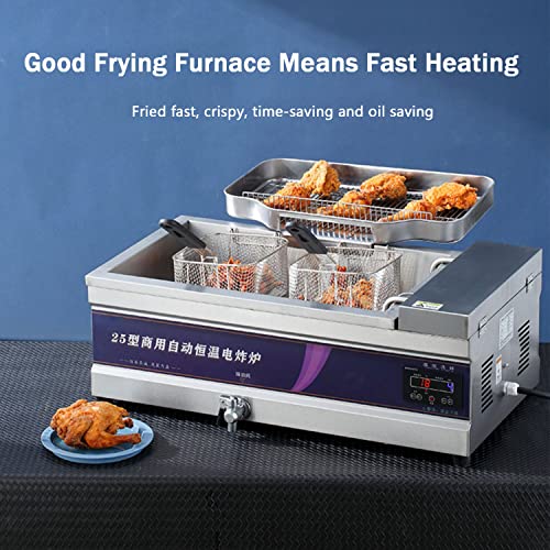 Elektrische Fritteuse, Fett-Chip-Fry, Doppel-Einzeltanks, kommerzielle Arbeitsplatte, Edelstahl-Chip-Fritteuse, Pommes Frites, 220–240 V Ölwanne, elektrische Fritteuse, leicht zu reinigen, 25 l (25