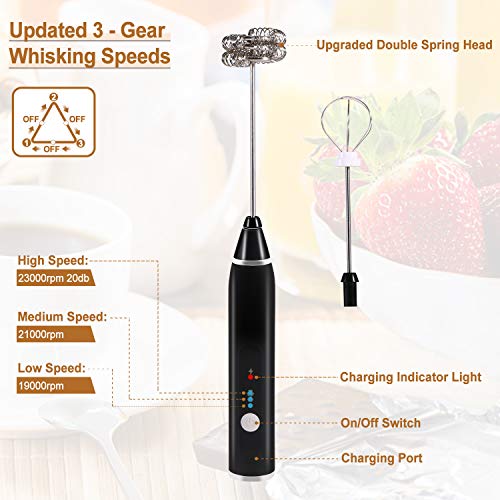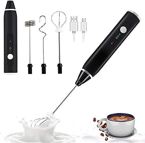 Elektrischer Milchaufschäumer, 3 in 1 Handheld USB Wiederaufladbar Milchschäumer, Aufschäumer Milk Frother Milchschaum…