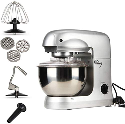 [ Accessories]:with delivery scope of accessories including of Large-capacity mixing bowl, meat grinder net, sausage filling pipe, balloon formed egg whisk, C-shaped dough hook Y-shaped flat beater ,this stand mixer miracle works multifunctionally to mix, beat,emulsify, knead,whip eggs or cream