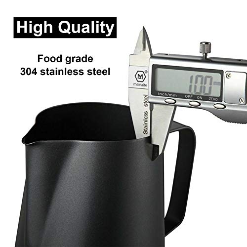 Emsmil 600ml Edelstahl Milchkännchen Kit mit Messung Mark und Latte Art Stift Milchaufschäumer Kännchen Schwarz…