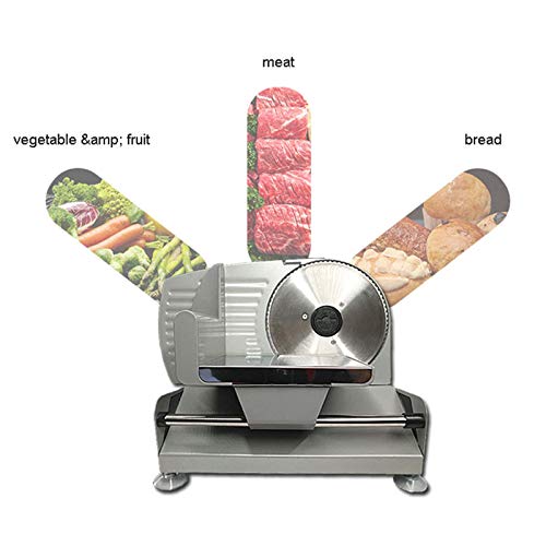 ★ 100 W Leistungsstarker Fleischschneider: Der aktualisierte elektrische Lebensmittelschneider wird von 100 Watt schneller, leistungsstarker Schneidleistung angetrieben. Dies ist ein äußerst vielseitiges Modell mit genügend Leistung und Geschwindigkeit, um so ziemlich alles in Scheiben zu mähen. Nicht Gewiss Fleisch, sondern bekannt als Käse, Brot und Gemüse. So erhalten Sie eine Allzweck-Schneidemaschine, wenn Sie schnell Mahlzeiten zubereiten müssen.