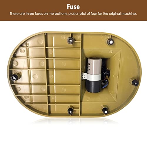 Absicherung: Es gibt drei Sicherungen auf der Unterseite, plus ein Tatal von vier für die Originalmaschine.