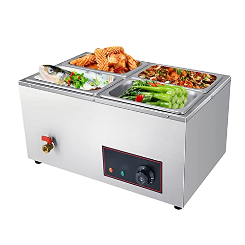 Der elektrischer chafing dish wärmer über zwei großvolumige Tabletts, die mit einem Wassertank kombiniert sind, und verwendet Wasserdampf zum Erhitzen der Speisen. Es kann auch die Temperatur (35-85 °C) anpassen, um ein Austrocknen der Lebensmittel zu vorbeugen und den besten Geschmack der Lebensmittel zu erhalten.