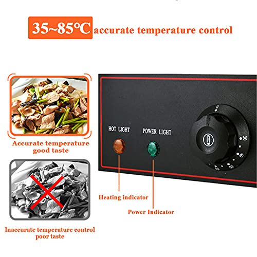 【Intelligente Temperaturregelung】- Der chafing dish speisenwärmer passt die Temperatur durch Drehen des Knopfes an. Sie können die Temperatur je nach erhitztem Gargut zwischen 35°C und 85°C einstellen, um den besten Geschmack des Garguts zu erzielen. Wenn die Temperatur die eingestellte Temperatur erreicht, hört sie auf zu arbeiten und ist niedriger als die eingestellte Temperatur. Wenn die Temperatur hoch ist, wird automatisch erhitzt, um die beste Temperatur der Lebensmittel zu gewährleisten.