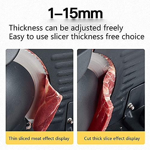 Koch sein: Der Allesschneider schneidet das Essen exakt, er macht Sie zu Hause wie ein GUTER Koch. Einstellbare Dicke von superdünn bis ca. 0~15 mmDick zum Sensen verschiedener Lebensmittel wie Fleisch, Feinkost, Käse, Roastbeef, Putenbrust, Gemüse und Obst.
