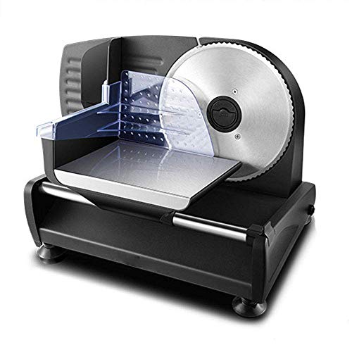 ? Leistungsstarker Fleischschneider mit 150 W: Der elektrische Lebensmittelschneider mit Update wird von 150 Watt schneller, leistungsstarker Schneidleistung angetrieben. Die gezackte Klinge ganz rostfreiem Stahl ist scharf genug, um gefrorenes Fleisch, Feinkost, Käse usw. zu Sicheln scharfer Schnitt.