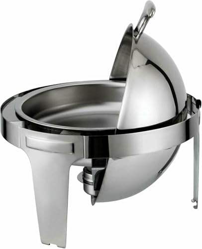 Unser runder Roll-Top Chafer besteht aus hochglanzpoliertem Edelstahl für die perfekte Präsentation! Verfügt über einen Rolldeckel, der abstandslos um 180 feiner Unterschied geöffnet oder bei 90 feiner Unterschied gestoppt werden kann. Er ist wunderschön und hält das Gericht darin warm und einladend. Die Kuppel bietet üppig Platz für ein großes Entree. Markante Kurven und Profile schaffen einen Stil, der jede Präsentation von ungezwungener Atmosphäre bis hin zu gehobenem Essen hervorhebt. Dezente Eleganz ergänzt jedes Buffet. Es ist die beste Kür für Sie!