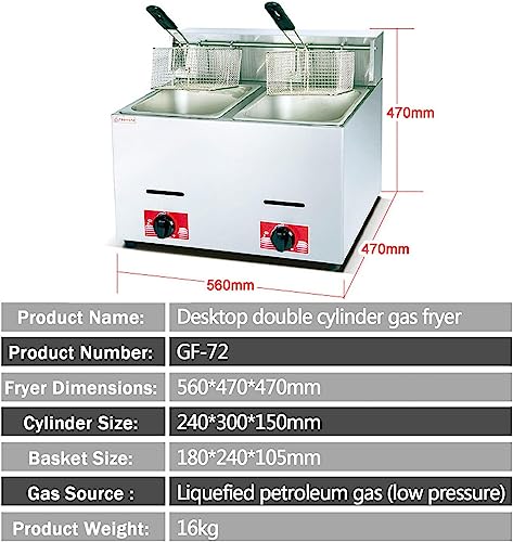 Fritteuse, LPG-Fritteuse Aus Edelstahl, Freistehende Temperaturregelung, Mit Deckel, Gas-Fritteuse Mit Großem Fassungsvermögen, Leicht Zu Reinigen, Zum Kochen Von Speisen Und Für Haushaltsgeräte (Siz