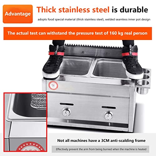 Fritteuse mit einem Zylinder, kommerzielles Gas, 12 l, Brathähnchen mit 2 Frittierkörben, dicke Edelstahl-Arbeitsplatte, tief für Zuhause