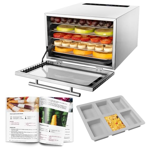 Inklusive umfangreichem Rezeptbuch (72 Seiten) statt dessen Frucht- und Gemüsechips, Fruchtleder, Müsliriegel, süße und herzhafte Snacks, Beef Jerky und Trockenfisch; 1 Müsliriegel-Form jeder Silikon statt dessen 6 selbstgemachte Riegel