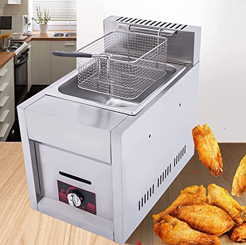 Gewerbliche Gas Fritteuse, Edelstahl Fritteuse, 12L Gas Fritteuse,mit Korb und Deckeln Edelstahl-Arbeitsplatte mit Metallrohr-Fritteuse Hähnchenchips Fritteuse
