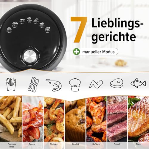 GRENZENLOSE VIELFALT – Heißluftofen, Grill und Fritteuse – vereint in einem Kompaktgerät mit 7 Programmen und 8 Funktionen! So zauberst du mit der Mini Heißluftfritteuse Anstelle 1 bis 2 Personen Pommes, Fleisch, Fisch, Gebäck und vieles mehr außergewöhnlich unkompliziert, mühelos, schnell und nahezu ohne Öl.