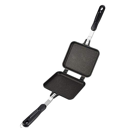 Dieses Backwerkzeug besteht ganz einer Aluminiumlegierung, ist hochwertig, lebensmittelecht, robust und langlebig. Es ist mit einer doppelseitigen Platte ausgestattet, auf der Sie Waffeln, Toast und Eierbrötchen backen können. Es kann aka qua Grillpfanne verwendet werden.