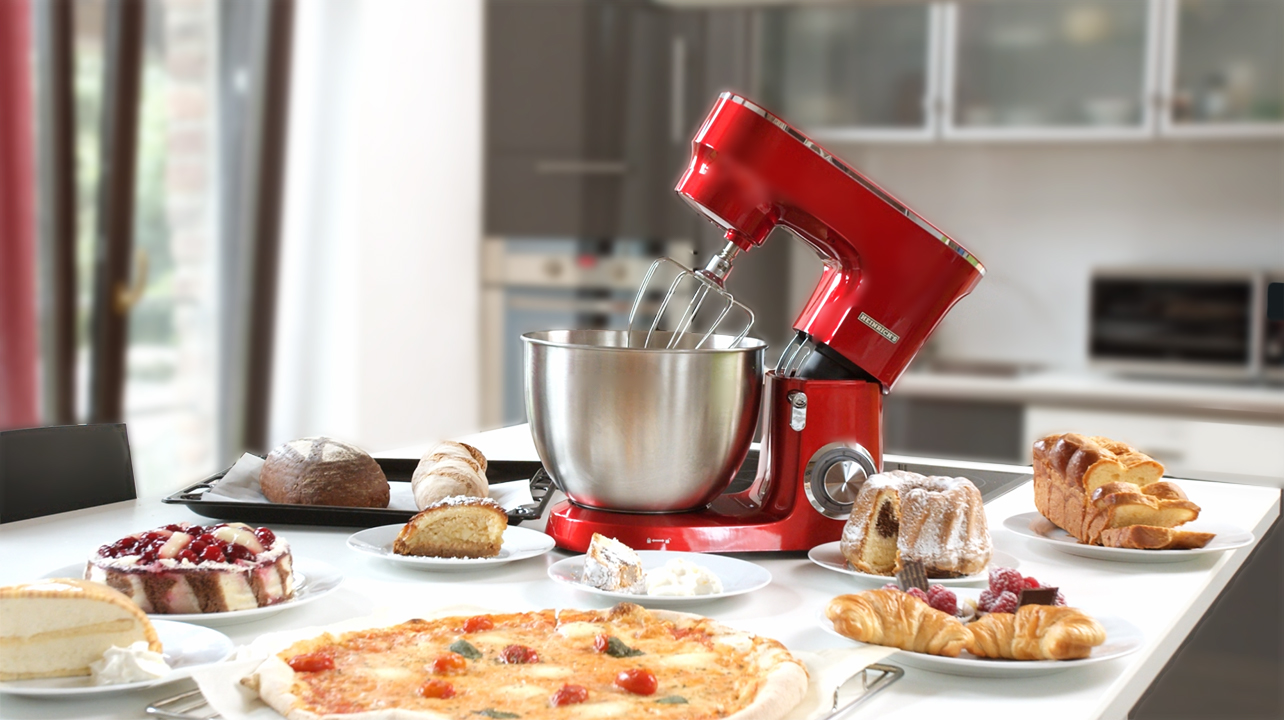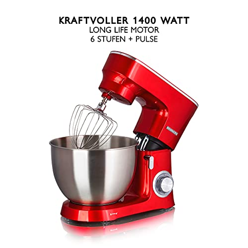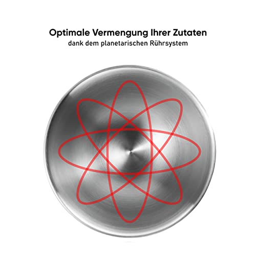 🧁PERFEKTE VERMENGUNG-Die Universalküchenmaschine mit 1400 Watt-Motor verfügt über einen planetarischem Rührsystem. Somit ist eine komplette Vermengung des Teigs garantiert.