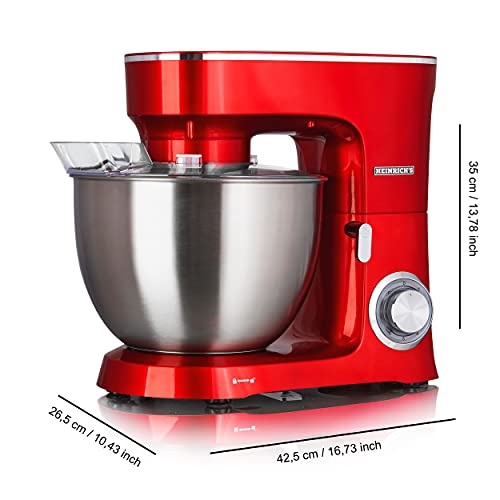 HEINRICHS Küchenmaschine Knetmaschine Teigmaschine Rührmaschine 1500W Küchengerät Rührbesen Knethaken Schneebesen 6…