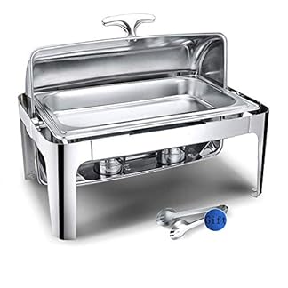 Haltbarer Edelstahl: Buffet-Food-Server besteht aus hochwertigem Edelstahl, hat eine gute Hitzebeständigkeit, ist nicht leicht zu rosten, zu korrodieren oder zu trüben, langlebig für eine lange Lebensdauer. Warmhalteschale aus lebensmittelechtem Material.