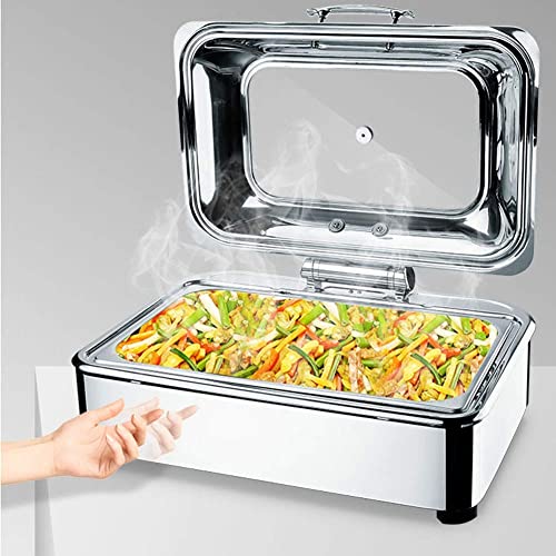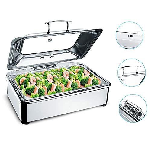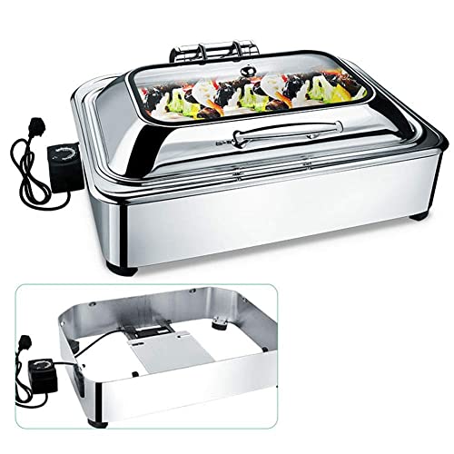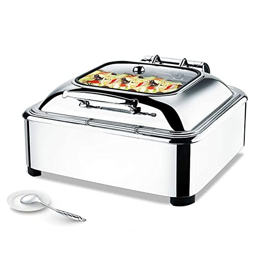 BUFFETWÄRMER UND SERVER – 1.Der Luxus-Lebensmittelwärmer besteht allesamt hochwertigem Edelstahl; 2. Einstellbare Temperatur, einfach zu bedienen und zu reinigen; 3. Edelstahlgriff, glatte Kanten, ohne die Hände zu verletzen; 4. Ermöglicht vielen Menschen gleichzeitig warmes Essen zu genießen;5. Hydraulischer Pufferschalter.