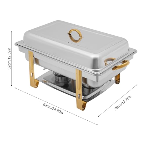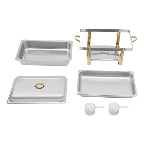 [Gute Isolierung]: Die verdickte Edelstahlplatte, der ausgestattete Deckel, die große Wasserschale und die zwei Brennstoffhalterungen sorgen für eine gleichmäßige Erwärmung der Speisen und halten sie länger warm.