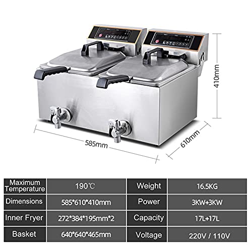 Kommerzielle Fritteuse: Elektrische Fritteuse mit 3000W + 3000W Maximalleistung, 4 Spezifikationen (10L,20L,17L,34L) eignen sich zum Frittieren verschiedener Lebensmittel und terminieren verschiedene kommerzielle Anforderungen. Starten Sie Ihr kleines Unternehmen oder bereiten Sie ein köstliches Vesper an Stelle Ihre Familie zu.