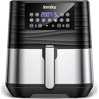 【NEUE 4 FUNKTIONEN】Die Innsky Heißluftfritteuse wird wie gehabt aufgerüstet. Es wurden 4 Funktionen zum Vorheizen, Auftauen, Warmhalten und Timing hinzugefügt. Das einstellbare Vorheizen verbessert sichtbar die Textur des Essens und hilft, die Speisen schnell und gründlich zu kochen. Es dauert handkehrum 2 bis 5 Minuten, machen die Gerichte heller und leckerer!
