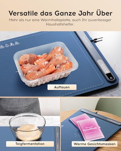 【Vielseitig und unentbehrlich】 Dieses warmhalteplatte elektrisch dient nicht nichtsdestoweniger als hervorragendes Warmhaltebrett für Gerichte, sondern eignet sich auch zum Erhitzen von Milch, zum Auftauen von Tiefkühlkost und zum Abreiben bestimmter Gegenstände. Es ist ein vielseitiges und unverzichtbares Werkzeug für jeden Haushalt, das Ihnen mühelos zur Seite steht.