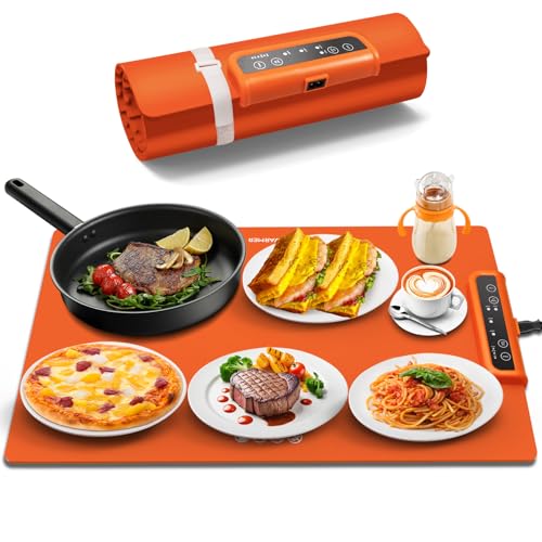 iTRUSOU Warmhalteplatte für Speisen, Speisenwärmer Ganzflächige Erwärmung einstellbare Temperaturkontrolle, Tragbare und Faltbare Heizplatte mit Nano-Silikonmaterial für Warm Halten oder Auftauen