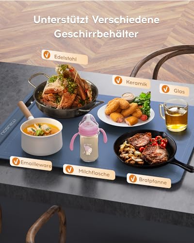 【Keine Einschränkungen bei Utensilien】Verabschieden Sie sich von Einschränkungen bei der Verwendung iTRUSOU Speisenwärmers, er ist mit einer Vielzahl hitzebeständiger Geschirrmaterialien wie Keramik, Glas, Edelstahl, Bratpfannen, Emaille und sogar Babyflaschen kompatibel. Da unser Brett nicht wählerisch ist, können Sie Ihr Lieblingsgeschirr ohne Bedenken verwenden.