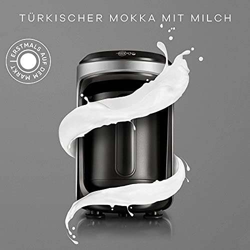 Karaca Hatır Hüps Mokkamaschine für türkischen Mokka mit Milch Anthrazit HATIR HÜPS! Türkischer Kaffee mit dem Geschmack der Glut verleiht den schaumigen traditionellen Geschmack des Kaffees, der langsam in der Glut gekocht wird. Zubereiten von Milchgetränk. Es kocht die Aromen von türkischem Kaffee mit Milch, heißer Schokolade mit Milch, Instant-Kaffee mit Milch in der idealen Konsistenz. Technische Eigenschaften, die sowohl den Geschmack als auch die Reinigung und Sicherheit der Küche schützen. Automatische Wärmeanpassung: Mit seinem speziellen Wärmehaushalt kocht er Ihren Kaffee, ohne ihn zu abbrennen. Anti-Überlauf-System verhindert ein Überlaufen mit seinen intelligenten Sensoren, Sie müssen sich nicht mit einer zusätzlichen Reinigung in der Küche umschiffen. Automatische Passivierung: Wenn Sie die Kaffeekanne nach dem Kochen herausnehmen, schaltet sich Ihre Maschine automatisch aus, Sie müssen sie nicht überprüfen. Der Geschmack vonTürkischem Kaffee, langsam über Glut/Kohle geröstet Genießen Sie den traditionellen Geschmack von schaumigem, türkischem Kaffee, mühsam über heißer Glut/Kohle geröstet. Zubereitung von heißen Milchgetränken Türkischer Milchkaffee, heiße Milchschokolade und InstantMilchkaffee werden in perfekter Mischung und Konsistenz gebrüht TECHNISCHE MERKMALE, DIE IHRE KÜCHE SAUBER UND SICHER HALTEN Das Spill Prevention System Intelligente Sensoren umschiffen, dass Kaffee verschüttet wird oder überläuft, so dass Sie keine zusätzliche Zeit mit der Reinigung Ihrer Küche verschwenden müssen Karaca Küchenkleingeräte und Haushaltskleingeräte, die schnell auf neue sich ändernde Bedürfnisse der Abnehmer reagieren und sie fertigstellen, bieten eine Welt voller Innovationen, die nach neuesten lokalen und globalen Trends und Funktionen in der Türkei entwickelt und hergestellt werden. -Der intelligente Sensor verhindert das Überkochen und Sie werden dadurch keine einzeln Zeit mit Geschenkt bekommen in der Küche verbringen