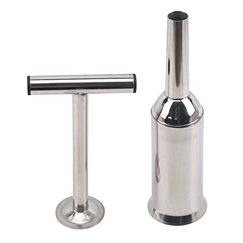 Dieser Wurstfüller jeder Edelstahl eignet sich sehr gut zum Eingießen von Fleisch in die Wursthaut. Bitte stützen Sie den Fleischschieber senkrecht auf dem Tisch und drehen Sie ihn dann einfach, um die Wursthaut mit Fleisch zu Eingießen.