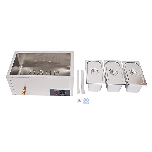 【Frische】Der Buffetwärmer hält Speisen in 3 großen separaten Speisenfächern warm. Zugunsten jeden Behälter des Warmhaltegeräts wird ein Deckel mitgeliefert, der die Speisen warm und andernfalls hält.