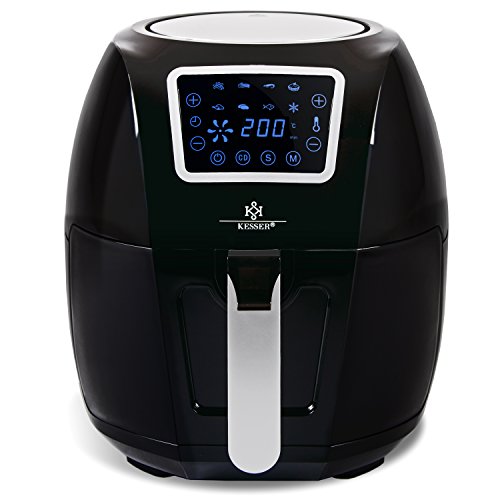 Airfryer mit digitalem Touch Display | 8 Programmen | ohne ÖL | Gratis Rezeptheft | Ofen ✓ Backofen ✓ Heißluft ✓ Grill usw… | Fettfrei | Farbe Schwar ✓ keine Fettgerüche und kein Fettfilm auf Gegenständen in der Küche! Keine Altöl-Abfallentsorgung! Einfache, schnelle, mühelose Reinigung!